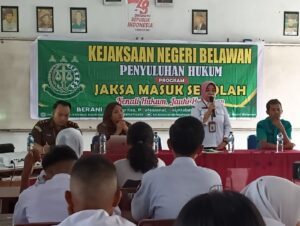 Rabu (28 Februari 2024) SMA Negeri 20 Medan kedatangan tim Kejaksaan Negeri Belawan dengan mengadakan kegiatan Jaksa MAsuk Sekolah berupa penyuluhan hukum yang bertajuk “Kenali Hukum dan Jauhi Hukuman”.